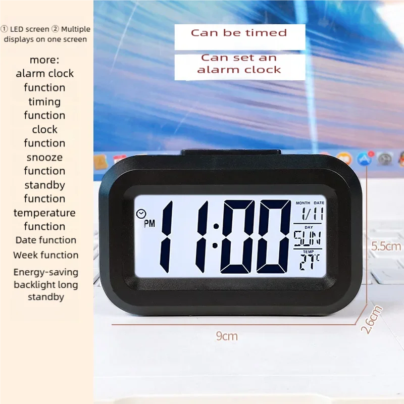 Keep track of time, date, and temperature with this smart digital alarm clock. Its clear black-and-white LCD display makes reading the time easy from any angle. Equipped with a calendar and timer function, it’s perfect for home or office use. The built-in LED light adds a soft glow, ideal for nighttime visibility. Compact and modern, it fits neatly on desks, nightstands, or shelves. This clock requires no battery (battery not included), allowing for flexible power options. Its multifunction design makes it a practical and stylish addition to any space. Easy to set up and use, it’s suitable for all ages. Perfect for bedrooms, offices, or as a thoughtful gift. Stay organized and stylish with this versatile and functional digital alarm clock.